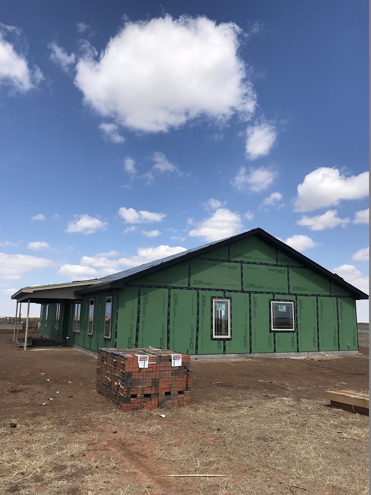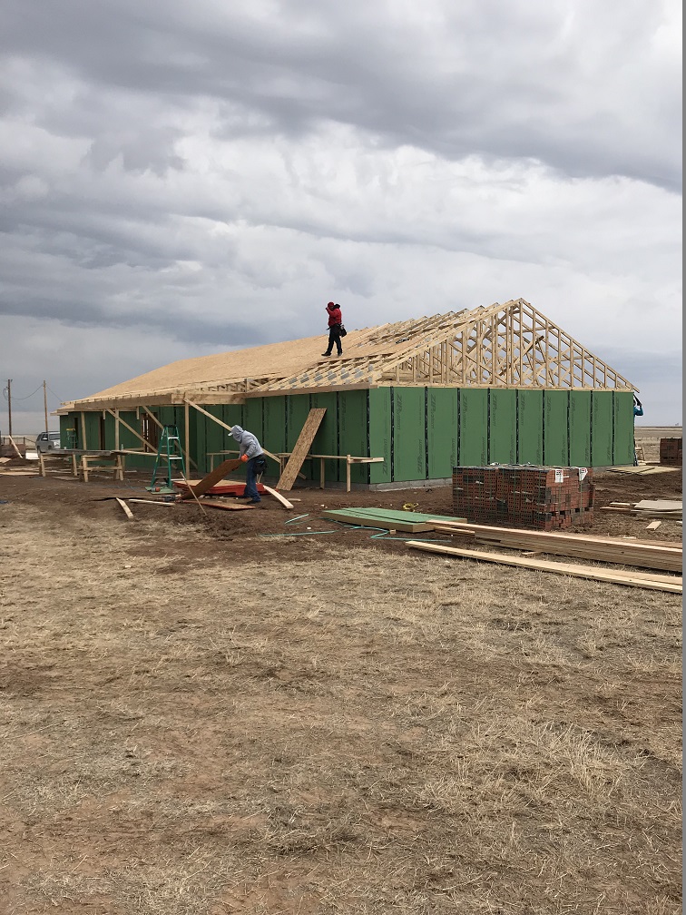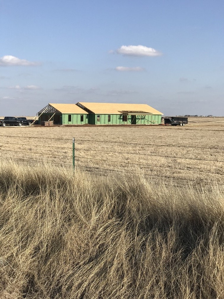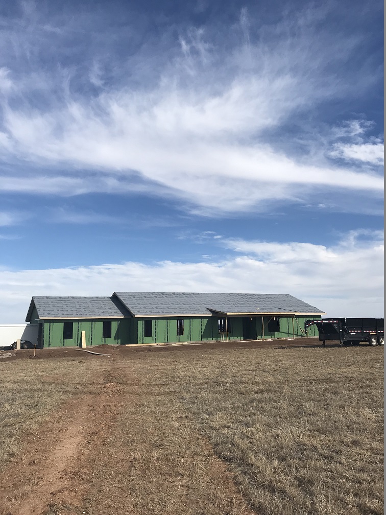Okay, I think you are up-to-date so back to the house. Just to recap: it’s a 2,900 square foot ranch-style home on 40 acres east of the loop in Pampa, Texas with a design plan to fit two couples. It is a 4-bedroom, 2.5 bath with an open floor plan for the kitchen, dining and living rooms. One of the bedrooms will be used as an office and another one will be Marilyn’s sewing room. We’ll have to plant some trees, but we are enjoying the view from all directions so much now that it may not be a priority.