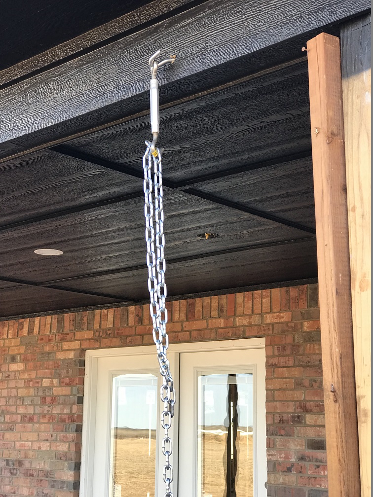 Temporary chains to protect the porch from another wind storm before posts were in place.