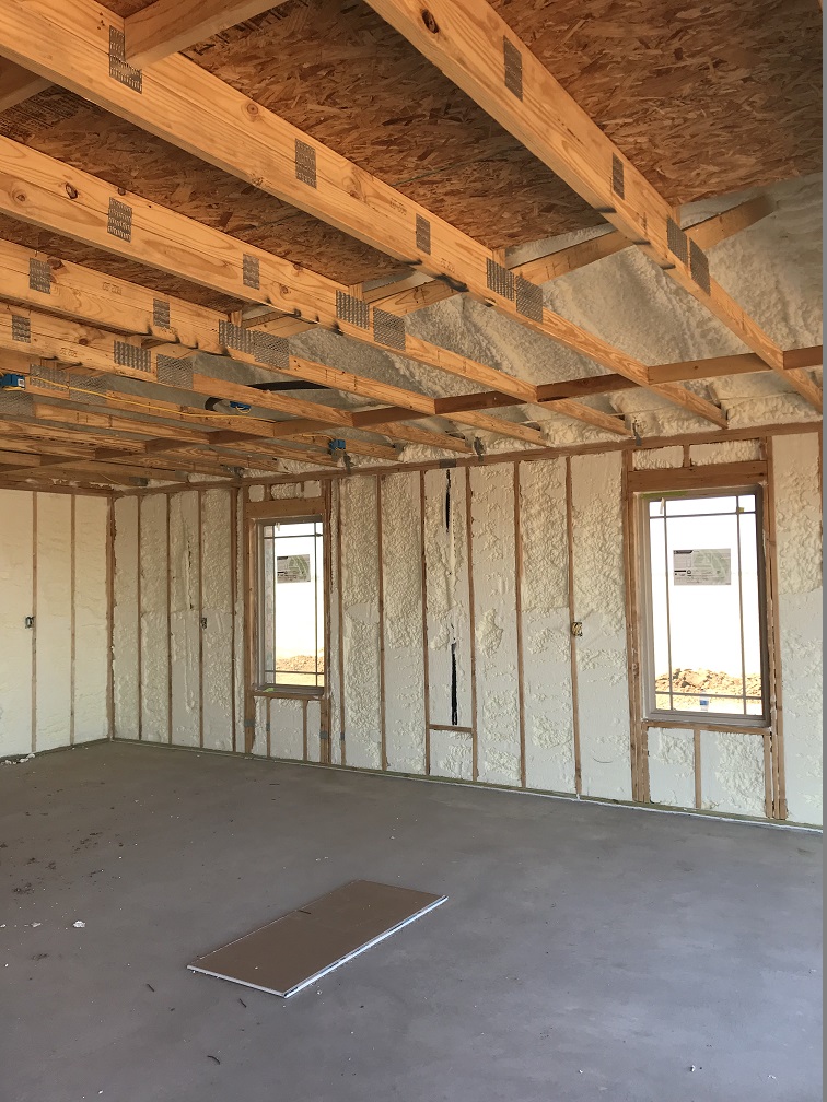 Getting cozy … foam insulation.