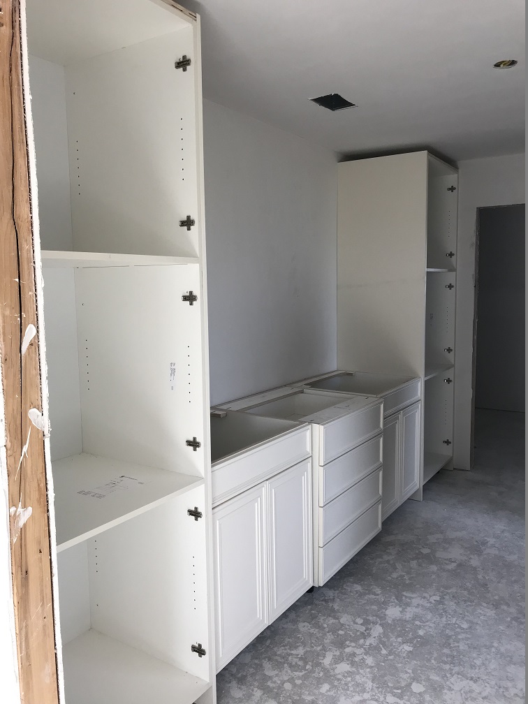 kitchen cabinets * lvp flooring * carpet* more lighting and plumbing fixtures * appliances * countertops * backsplash * septic * running water (finally) * the missing garage door so we can lock up!