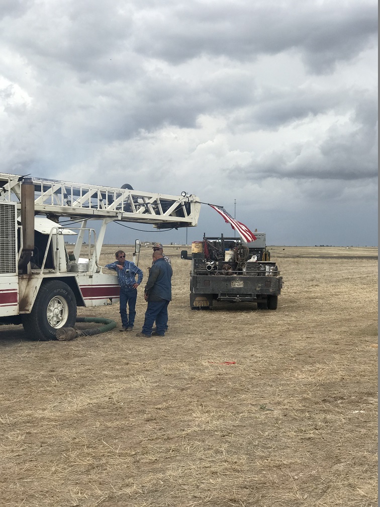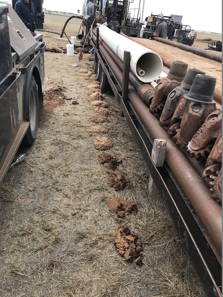 Pulling samples of sand and soil to moniter the depth of the well