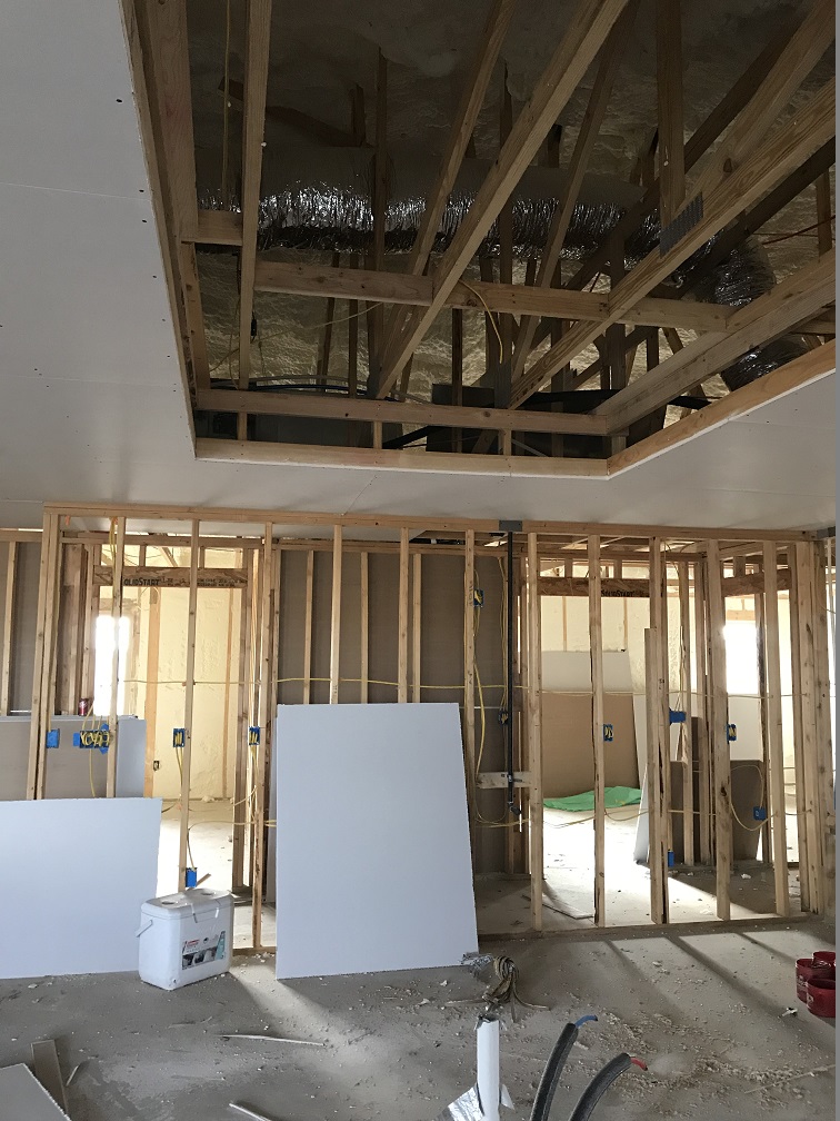 May was a little less busy, but a lot of work was done on the inside of the house. The sheet rock, tape & bedding, crown & base and texture was completed to get ready for the painters at the end of the month.