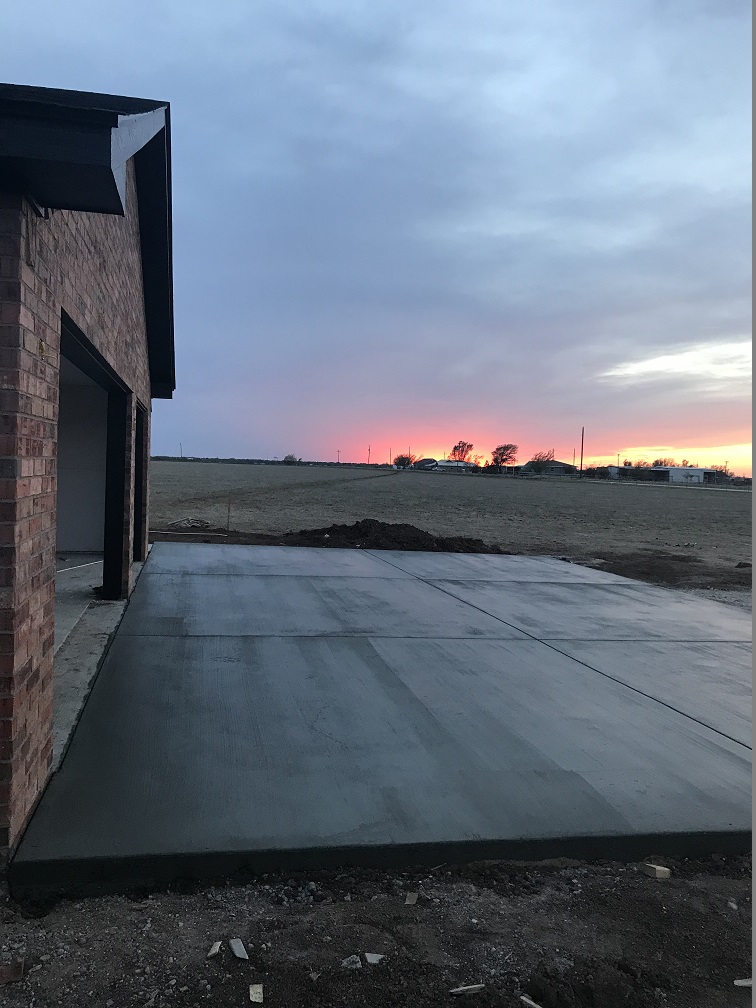 Garage entry poured just before a fiery sunset