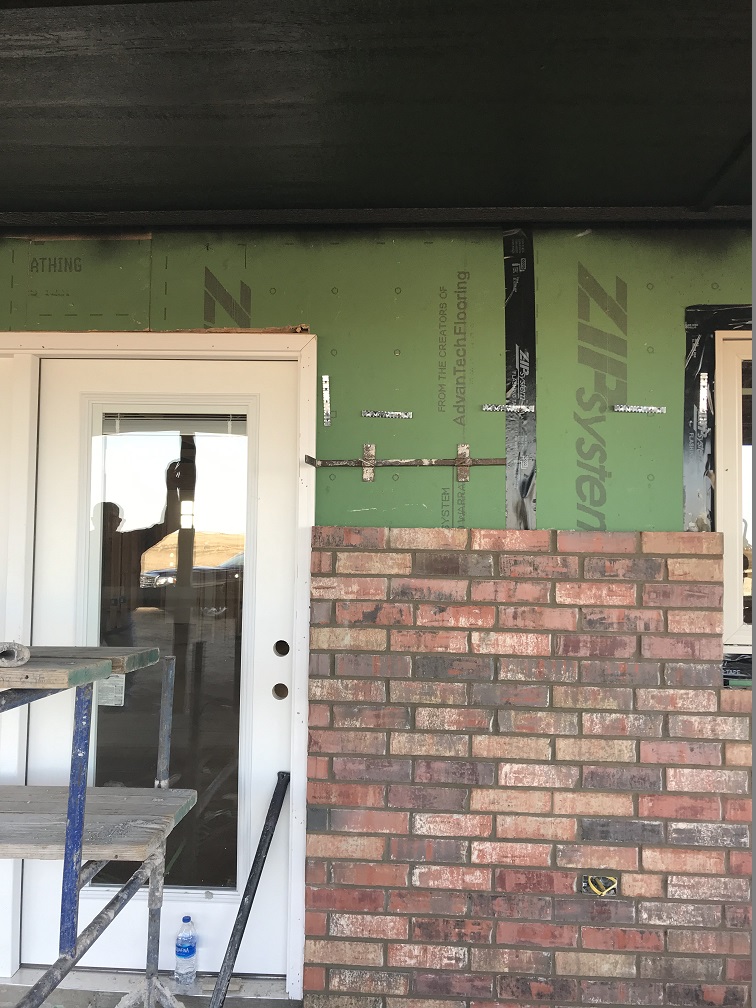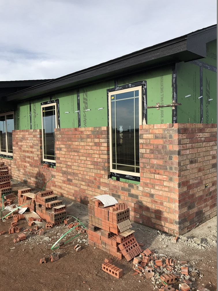 Exterior doors and windows installed, brick delivered
